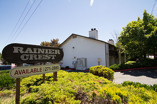 Rainier Crest has everything necessary to enjoy life. Each apartment have full size bedrooms ( 1 & 2 Bedrooms available ) , full bath, large kitchen with all the appliances. Each apartment also has a wood burning fireplace . There is covered parking for members of the Rainier Crest Community. Stop by our office for a tour of an available apartment .